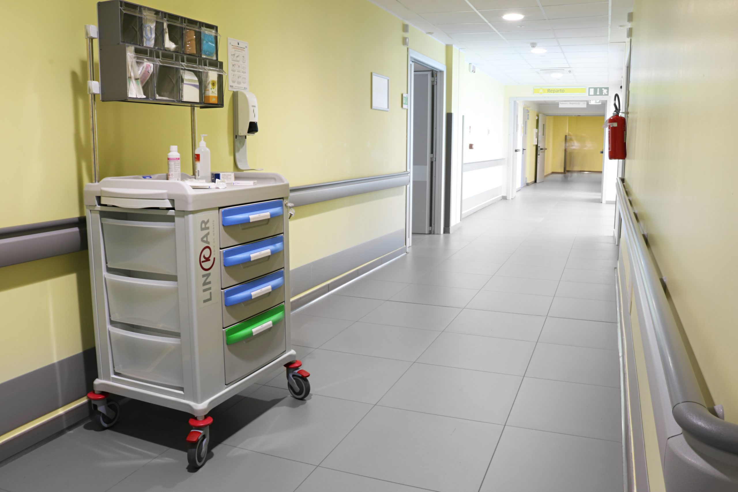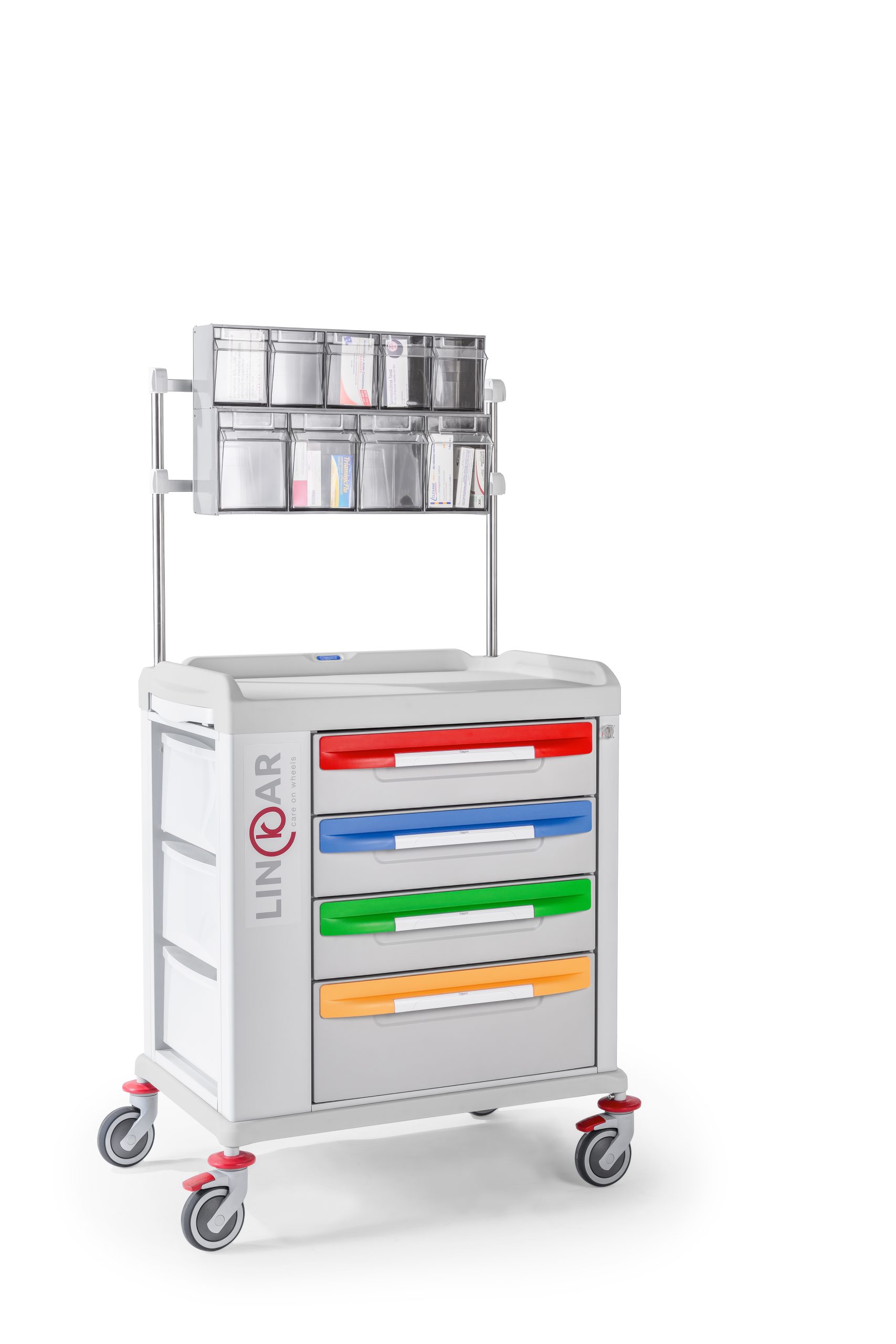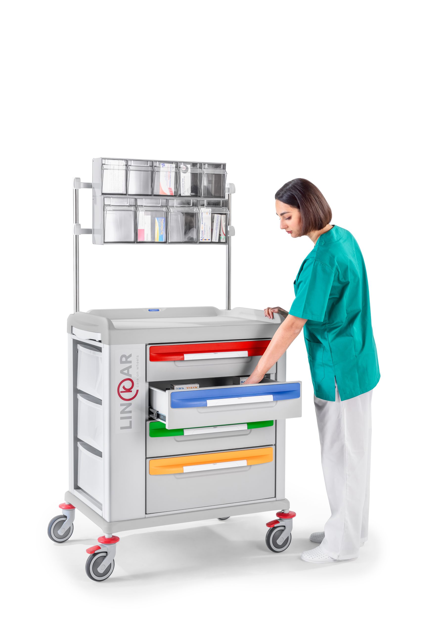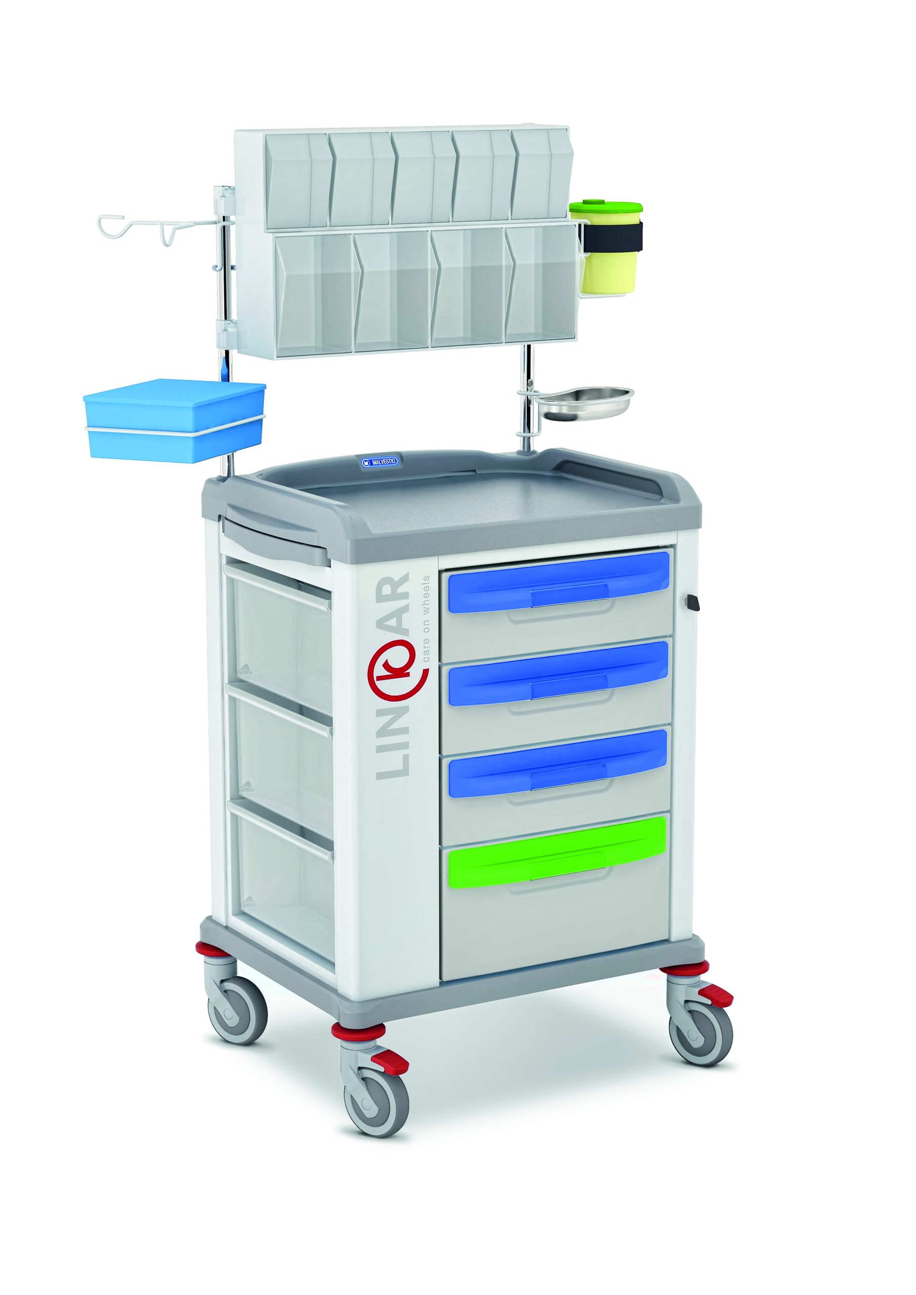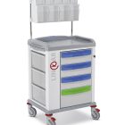 La structure du chariot est fabriquée par assemblage de matériaux composites, chacun étantchoisi pour optimiser la fonctionnalité, la fi abilité et l a désinfection du produit.