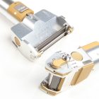 - L’utilisation de pinces de réduction de largeur sur la tête du dermatome permet de couper des largeurs de greffon plus petites