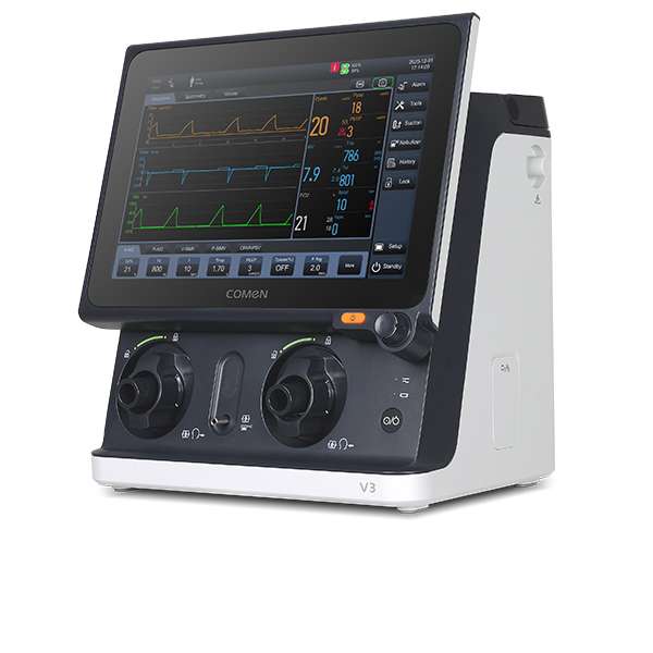 - Modes de ventilation étendus et des technologies de synchronisation intelligentes, V3 propose toute une gamme de traitements: thérapie à l’O2 – surveillance – sevrage.