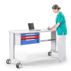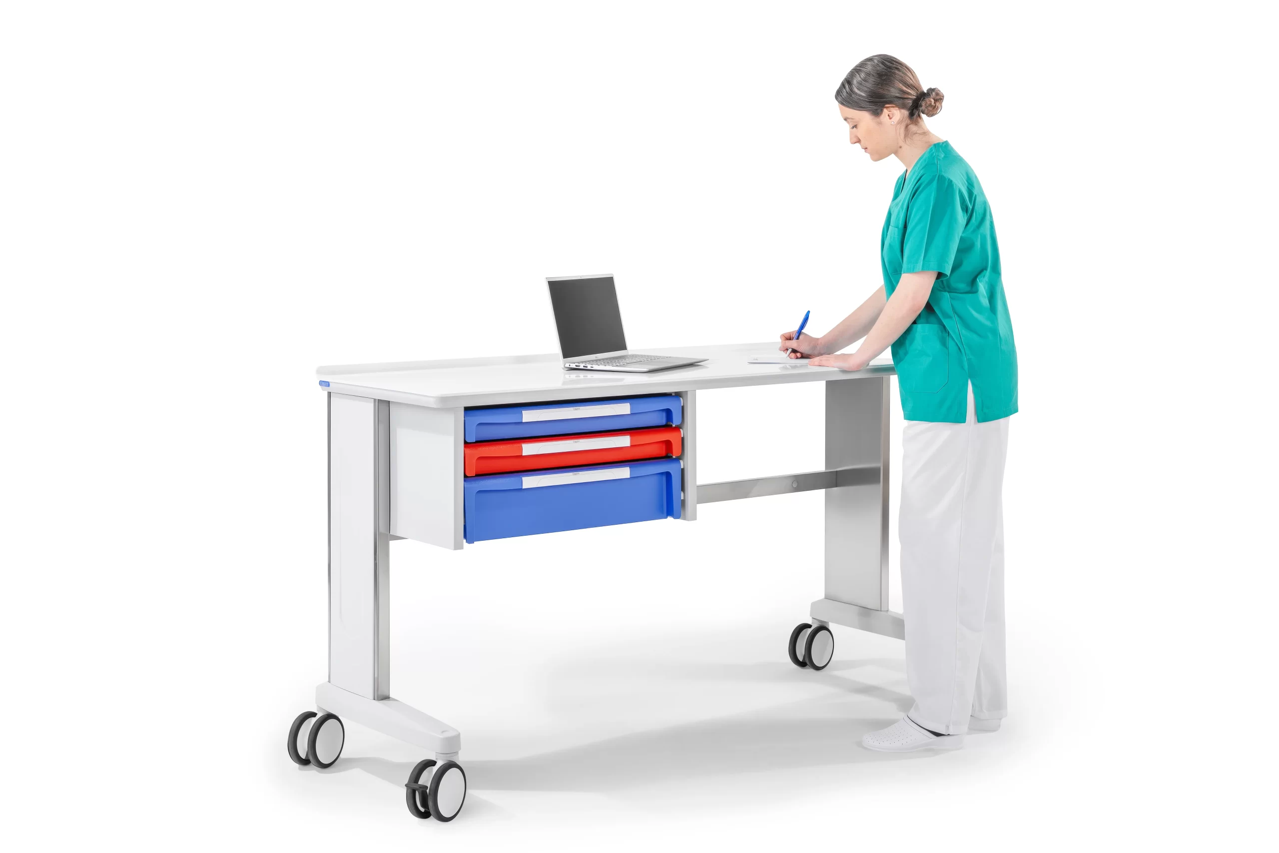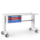 Comme les autres éléments mobiles du système Logiko System, les tables de travail permettent un déplacement rapide grâce aux roues doubles.